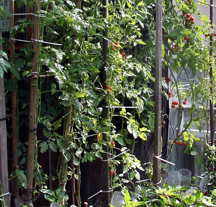 Mein Black Cherry ziehe ich mehrtriebig. Dann wird sie nicht so hoch, und dann habe ich auch etwas mehr Ertrag. Oder brauchen sie etwas mehr Erde. Ich bin noch bei lernen. Costoluto RAF ist noch gesund, und noch grün. Ich bin gespannt, wie sie schmecken ohne Salzwasser.
