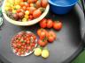 Die erste Mandarin, oben links in der Schüssel, darunter orange Banana, neben der Mandarin liegt Banana Legs, daneben grüne Würstchen, daneben Schwarze Pflaume, darunter die ersten reifen Renas Turban. Black Cherrys auch ein paar und unmengen der kleinwüchsigen Sorten wie Minibel, Micro Tom, Minigold, viele Vesennij Miecheurinski, Pendulina, Zuckerbusch, Tomaccio usw.