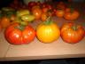 Heute mußte ich den Tomatendschungel roden, es war kein Durchkommen mehr. Die Pflanzen im Kübelgewächshaus waren total ineinander verschlungen und zum Teil ineinander gefallen. Drei Stunden habe ich mich da durch gekämpft.. Als Belohnung gabs eine schöne Ernte und drei dicke Fleischis, Pink Lemon 500 Gramm, Mandarin 410 Gramm und noch eine Pink Lemon mit 400 Gramm.